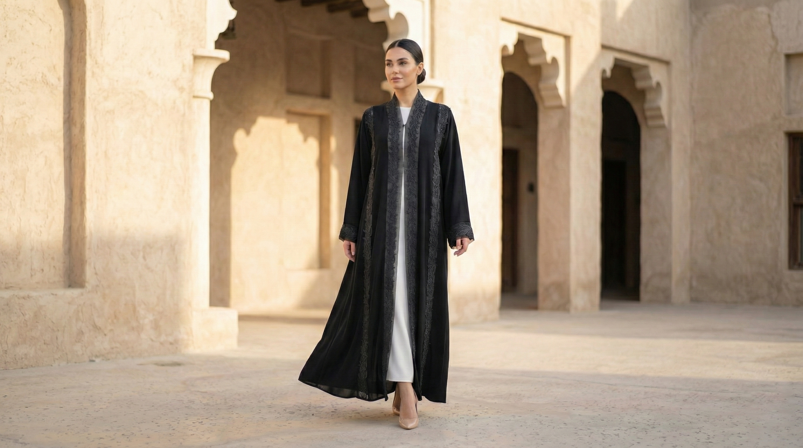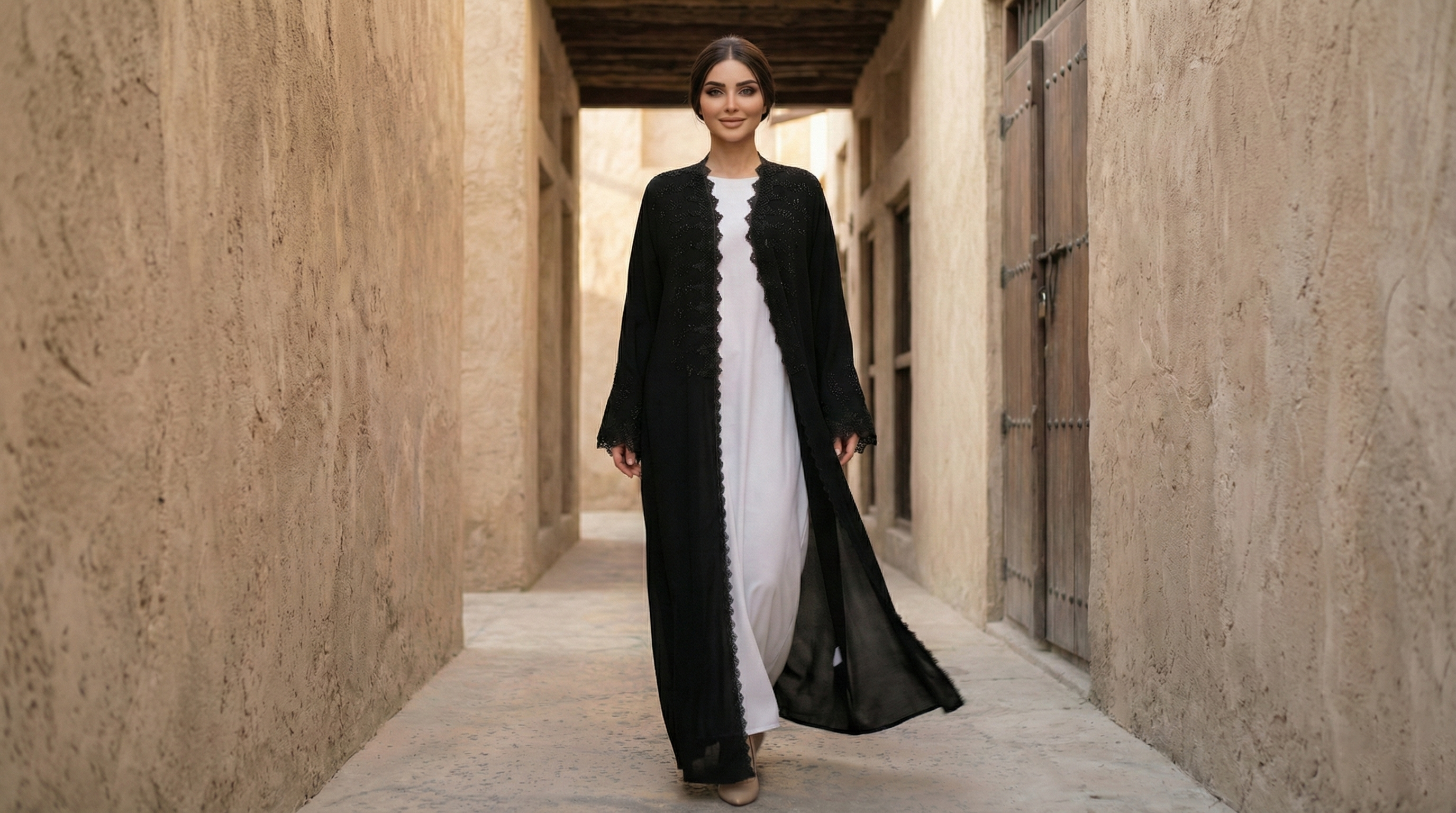 Each Karaz abaya is crafted with refined fabrics and delicate details, inspired by Saudi heritage and designed for modern elegance.